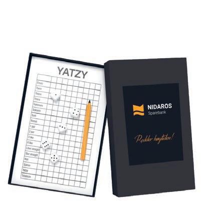 Yatzy i egen gaveeske | Yatzy i egen gaveeske. Inneholder blokk, blyant og terninger. Minimum 500 stk.