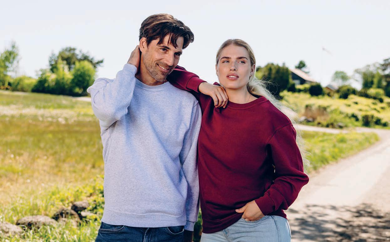 UM Crewneck (OCS-RCS) Regular Fit Unisex | 3440010 UM Hoodie (OCS-RCS) Regular Fit Unisex | Denne unisex-genseren og hoodyen er laget av en blanding av økologisk bomull og resirkulert polyester, noe som gir den en myk og behagelig passform med en stoffvekt på 350 g/m2. Ribbestrikket krage, mansjetter og nederkant i 2x1 ribb. Enzymvasket for en myk, lett slitt følelse. Designet i henhold til ECODESIGN-prinsippene for å lette resirkulering ved slutten av produktets levetid. Sydd med EcoVerde-garn, laget av 100 % resirkulert polyester. Stoffet er OCS-sertifisert som økologisk dyrket bomull og RCS-sertifisert resirkulert polyester. Sertifisert OEKO-TEX® MADE IN GREEN, som garanterer sikkerhet, åpenhet og ansvarlig produksjon. (OEKO-TEX STANDARD 100 + OEKO-TEX STeP). PETA-godkjent vegansk produkt, som betyr at det ikke er brukt materialer av animalsk opprinnelse. Tilgjengelig i mange farger. Str.: XS-5XL.