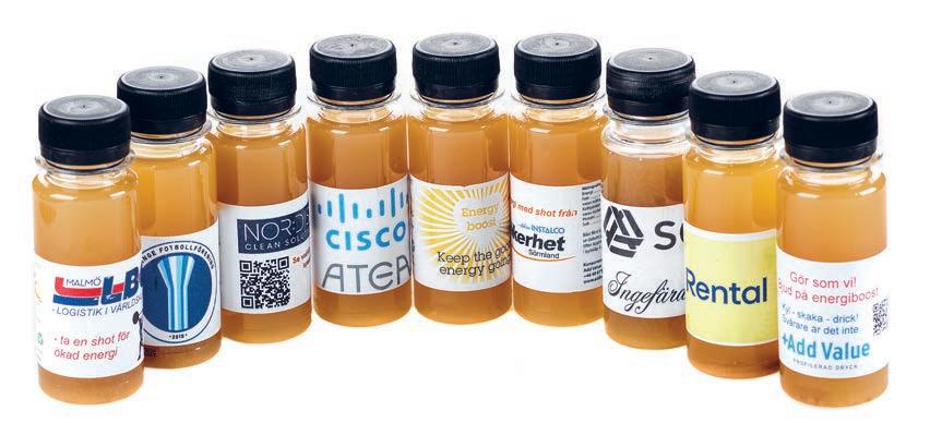 Ingefærshot 65ml | Shot av presset ingefær, chili, eplejuice og sitron. Smak: Ingefær. Ved antall over 1000 stk. kan andre smaker tilbys. Trykk i 4-farge, CMYK. Minsteantall 100 stk. Leveringstid: 2-3 uker.