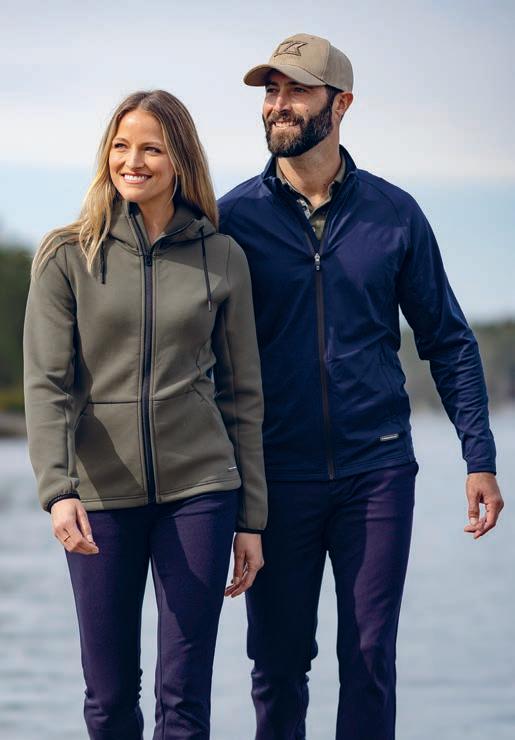 358418 Pemberton Hood FZ Men | 358419 Ladies | Hettegenser i behagelig, elastisk, dobbeltstrikket lettvektsmateriale. Det tekniske materialet er laget av opptil 70 % resirkulert polyester. Den høye kragen beskytter mot kald vind, og hetten er enkel å justere med snorer. To lommer med glidelås i front. CUTTER & BUCK-logo brodert langs ytterkanten av hetten. Str. Herre: S-4XL. Dame: XS-XXL.