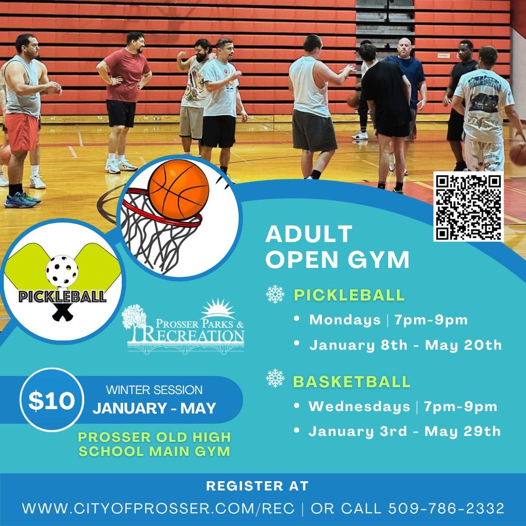 Basketball: Adult Open gym basketball is a community, athletic program where adults 18 and over come together to enjoy a friendly and competitive environment, while improving their athletic abilities, health, and wellness. Just bring a fun attitude.