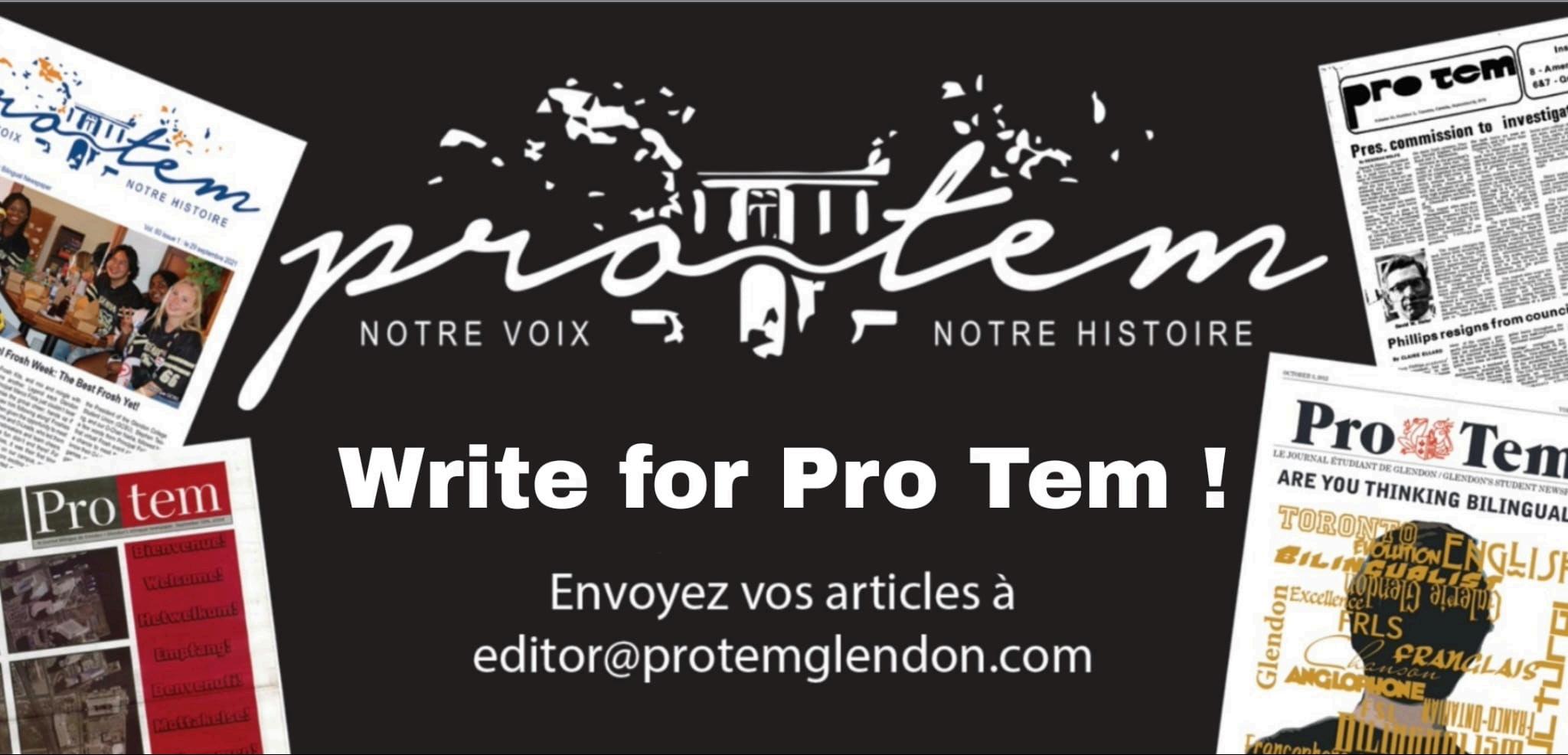 Pro Tem est une organisation unifiée qui accepte et publie des articles provenant des étudiants, des anciens élèves et des membres de la communauté. Bien que nous corrigeons les soumissions pour la grammaire et la clarté, nous restons fidèles à la voix et au message de chaque auteur. En tant qu’organisation, nous n’endossons pas nécessairement chaque point de vue exprimé; notre objectif est d’amplifier une diversité de perspectives au sein de notre communauté. Pour ceux qui souhaitent consulter un article dans sa version originale, non éditée, veuillez contacter notre rédacteur en chef à editor@protemglendon.com.