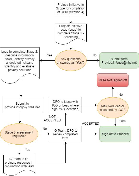 Identify the need for the DPIA – The Responsible Project/ initiative lead/process owner (hereafter referred to as “the lead”) must complete Stage 1 (Screening Stage) of the DPIA form. This consists of five short Yes/ No questions which will determine whether a DPIA is required. The form can be downloaded on the staff intranet (https://www.providecommunityplatform.co.uk/Interact/Pages/Content/Document.aspx?id=2574 &SearchId=10062