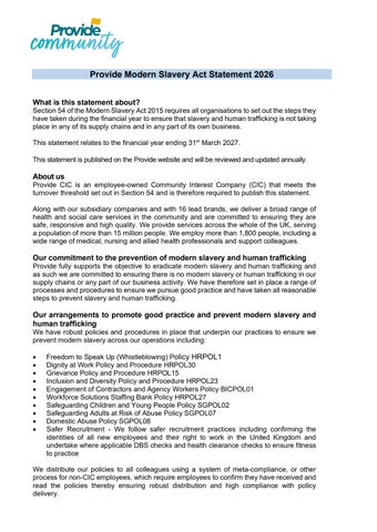 This statement is published on the Provide website and will be reviewed and updated annually.