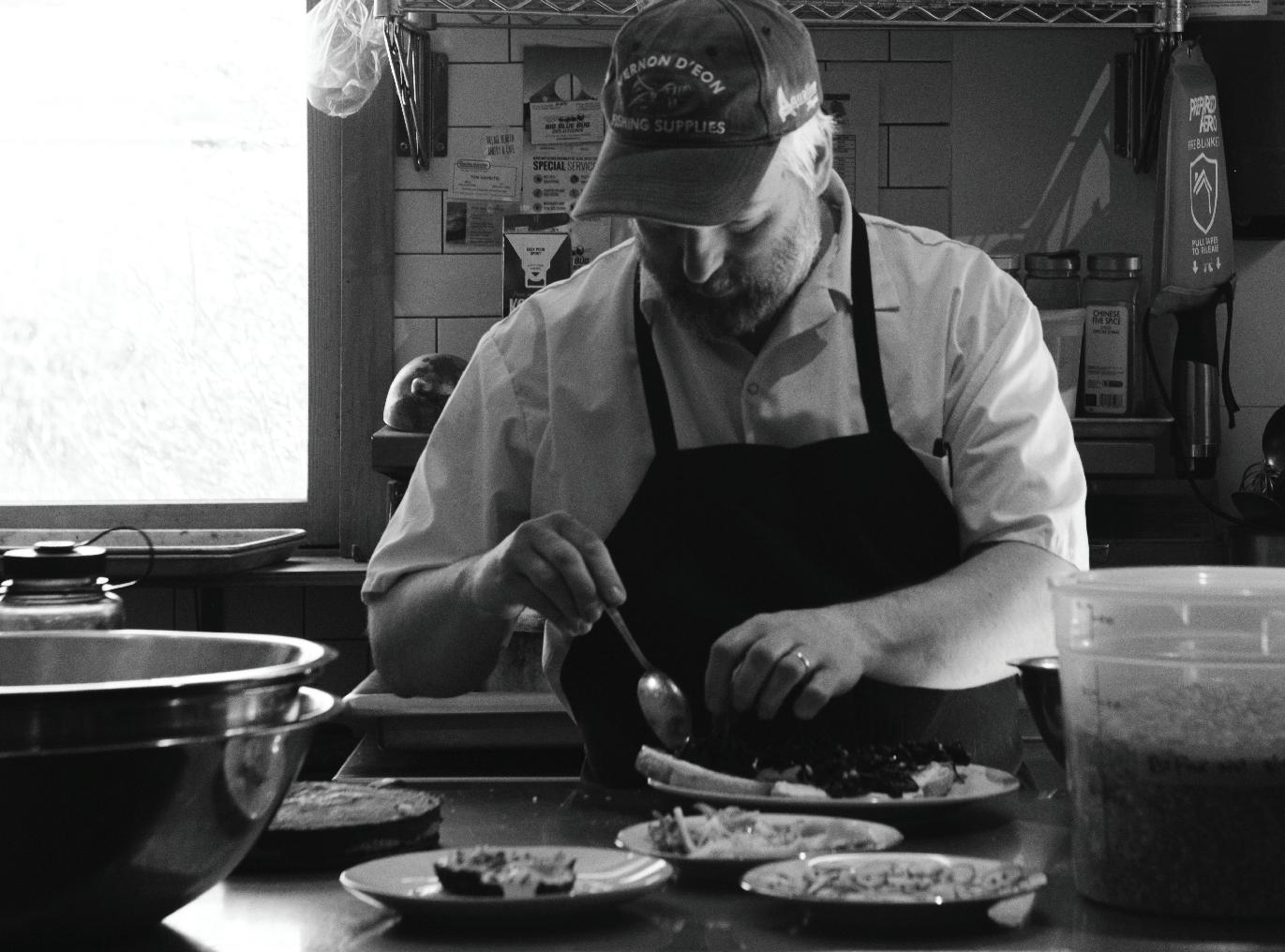 Their pop-up restaurant concept started through a serendipitous chain of events. In 2021, Stephanie and Lindsay Haigh became the new owners of The Village Hearth Bakery and Cafe, a staple in the Jamestown community. Noah helped make Sunday night pizzas for the popular spot in between cooking jobs, and a creative relationship blossomed between the food makers. When the Haighs learned the Cains were looking for a space to open their own eatery in 2023, they offered up the cafe to undergo a nightly transformation hosting their pop-up restaurant, Salty.