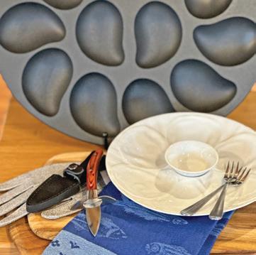 Behan explains how water salinity impacts the oyster’s flavor. “We’re in a salt pond, connected to the ocean, but we don’t get a full turnover of the ocean, so the freshwater input knocks the saltiness down, which really lets the other flavors in there shine. Ours are described as sweet, with a buttery, creamy, nice mouthfeel. You don’t have to load them up with cocktail sauce; you can have them straight up.” Find out how to bring their tideto-table oysters to your event by visiting online. Charlestown, NinigretNectars.com