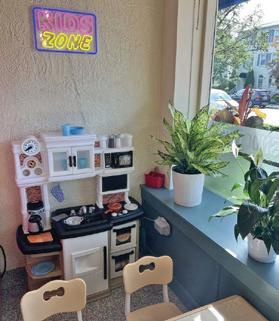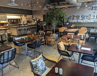 large wooden tables, or in cozy nooks with comfy chairs, the space – designed by local visionary Kyla Coburn – creates a sense of community, whether meeting new people or gathering for a meeting, while dining on inspired dishes.