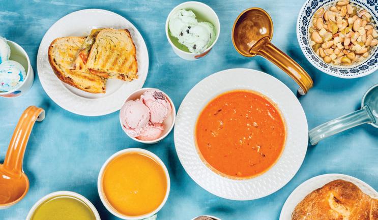 bread lovers, rest assured that loaves are scratchmade and excellent for dunking. Guests can also order grilled cheese, with or without additions like bacon and nut-free pesto, as well as freshbaked cookies and cakes for dessert. “It warms my heart knowing Rhode Island loves our food as much as I do,” says Scott. 1850 Broad Street, Cranston, LilysSoupsAndScoops.com