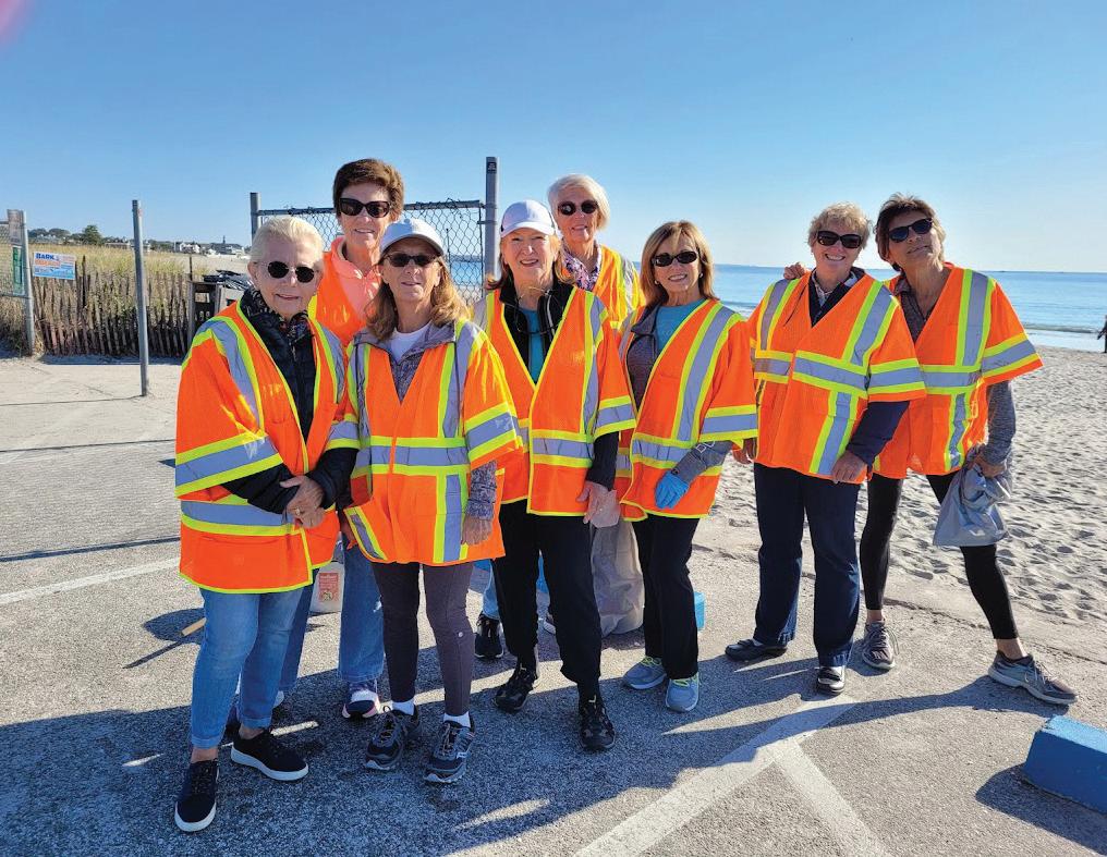 Have safety vests, will travel: members of the GFWC Women’s Club of South County at a beach clean-up