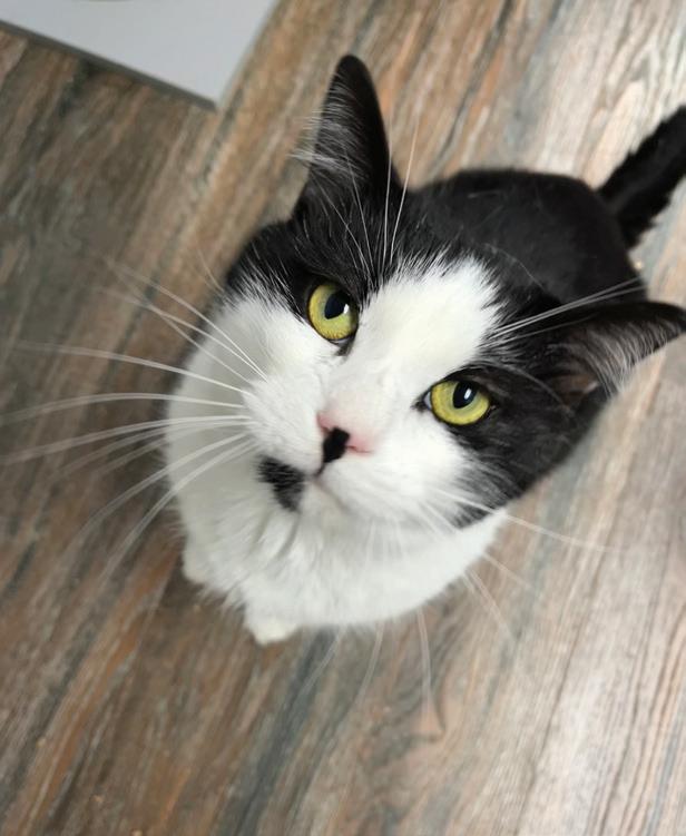 Are you looking for a Buddy? This affectionate cat will win over your heart. Buddy is a four-year-old black-and-white beauty with the most striking green eyes you’ll ever see. His handsome face is accented by his long snow-white whiskers and his black-tipped nose. Buddy loves attention and yummy treats. A female home where Buddy can be the center of your world would be his dream come true.
