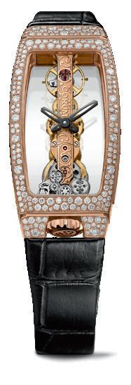 5n 18kt rose gold, 245 diamonds 1.28ct, snow setting finish with different sizes of diamonds, sapphire crystal with anti-reflective treatment, glare proof sapphire crystal back, tonneau-shape 21 x 43mm, 40-hour power reserve, water resistant 30m. $49,100