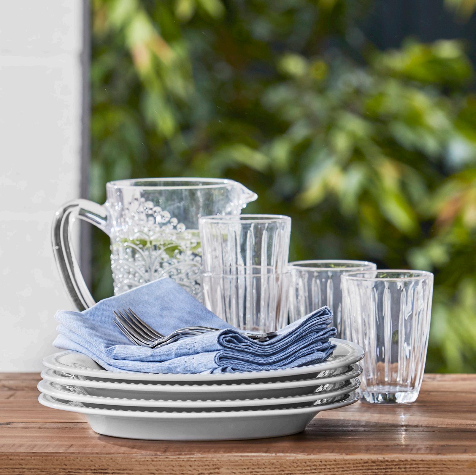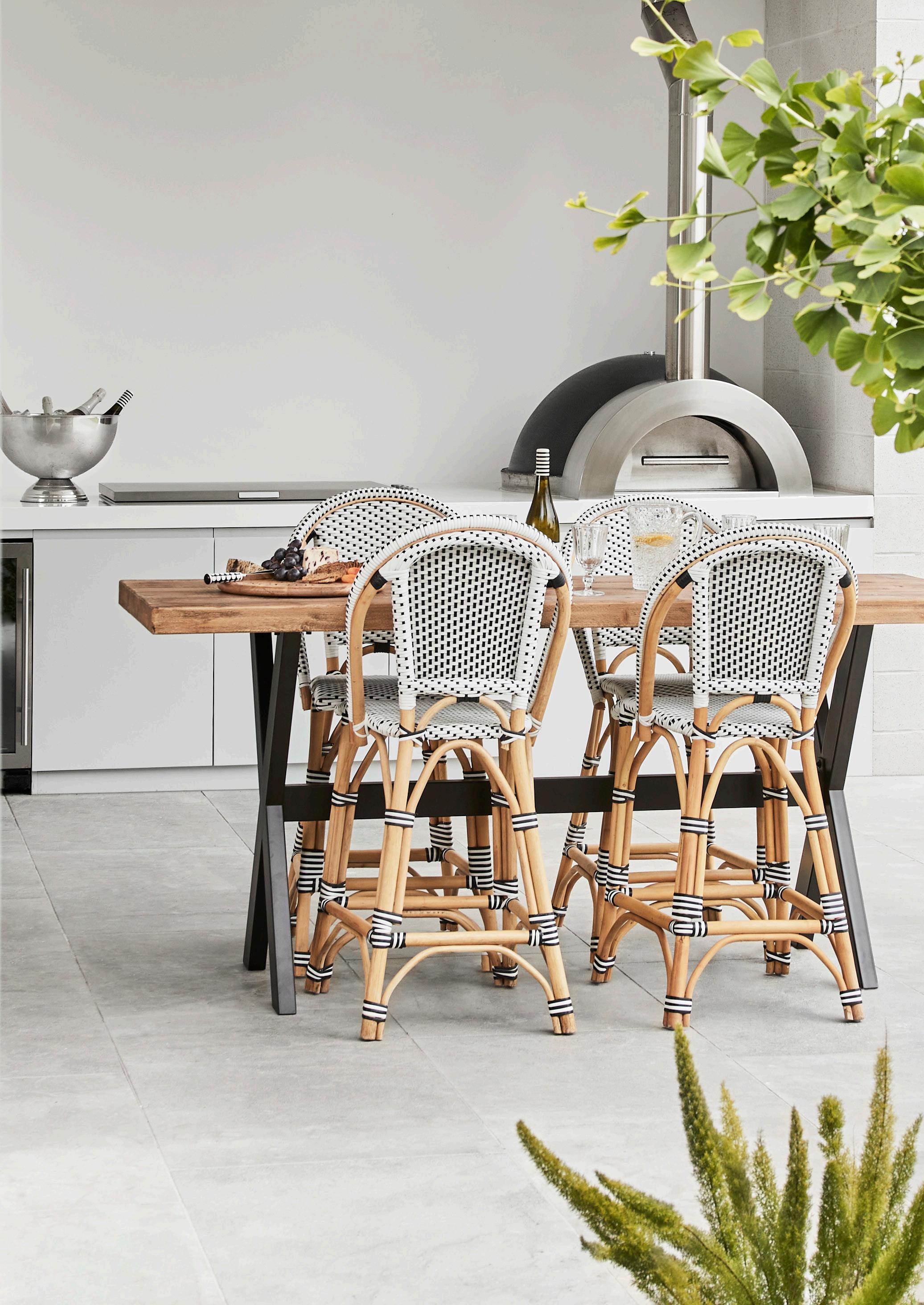 Bistro Stool, $249.95 | Santorini Bar Table, $1599 | Soleil Lantern, $229.95 | Aubrey Clear Jug, $29.95 | Coco Glassware, from $9.95 | Diamond Napkin, $9.95 | Hayman Napkins, $9.95 | Lauren Dinner Plate, $14.95