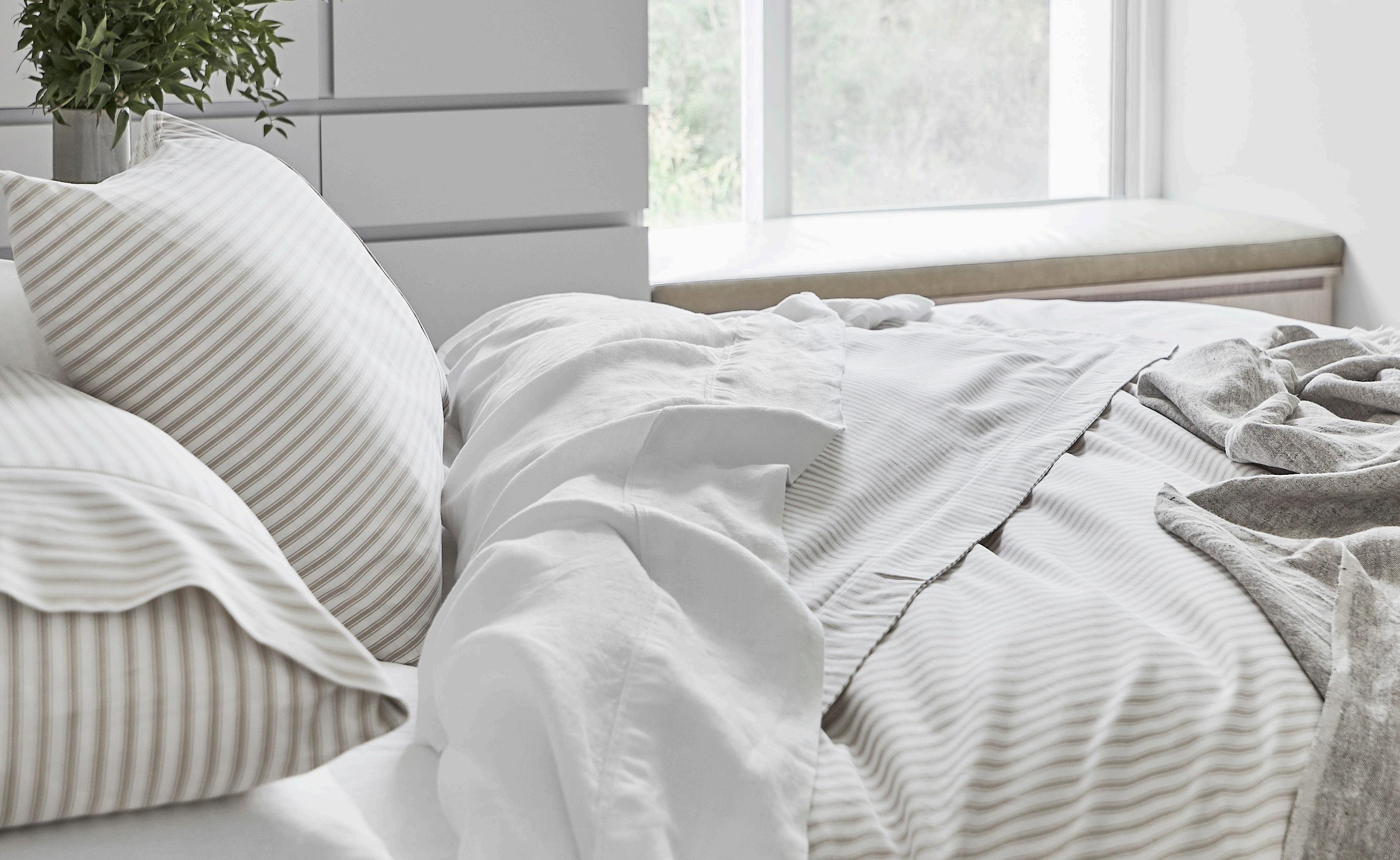 Our charming new range of Parish bedlinen in a ticking stripe is perfect for a bedroom makeover. Available in two gorgeous colourways; Natural & White and Black & White.