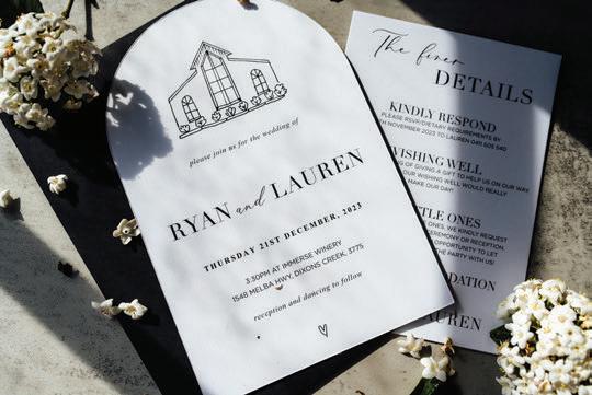 The possibilities are as limited as our imagination. With a wide range of materials, finishes and stocks and offering next-level luxurious printing methods including white ink, embossing, letterpress, foiling and die cutting – no matter the vibe, style or budget, Sunny can bring your vision to life. Your invitations are the first glimpse your guests receive of the epic celebration you are so lovingly planning so make a lasting impression.