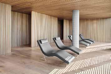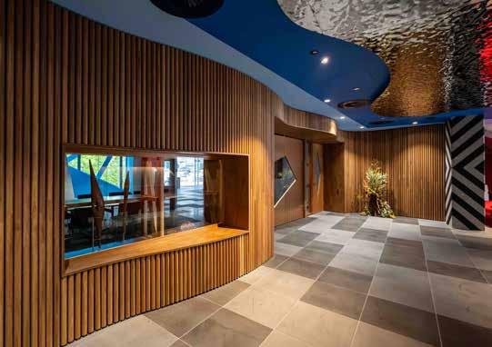 A major contributor to the seaside theme was the use of natural wood veneer indoors, while tongue and groove engineered timber flooring in the day spa and exercise rooms, and timber cladding outdoors, helped the project to blend with the undulating landscape.