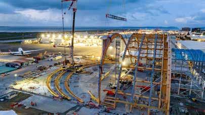 The interior of the Tāwhaki National Aerospace Centre near Christchurch and, during construction.