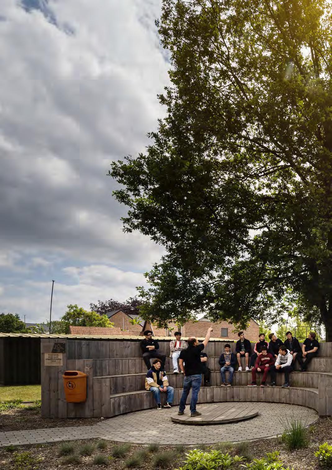 Een prachtige buitenklas in de schaduw van een klimaatboom? Dat is echt cool! Door te vergroenen bied je de jongeren schaduw én afkoeling. Zo bescherm je hen tegen de gevolgen van klimaatverandering. (Don Bosco Helchteren, HouthalenHelchteren)