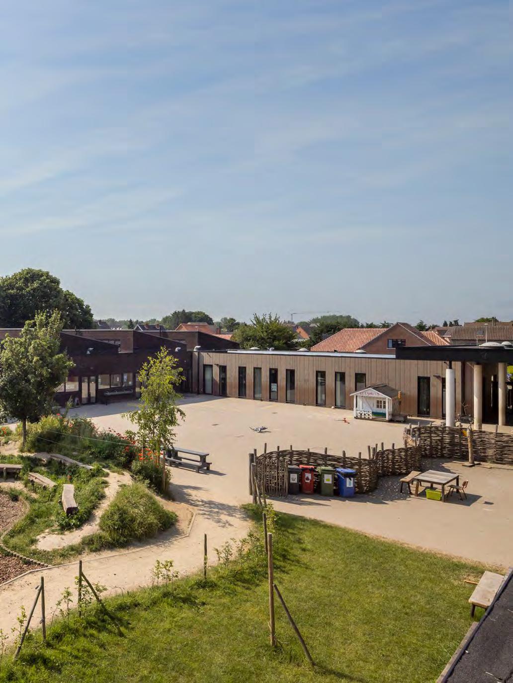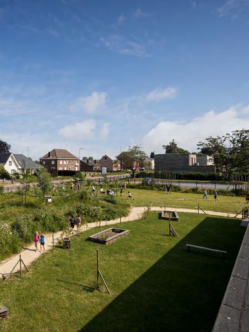 Green school grounds offer variety and play challenges. A natural climbing course with reclaimed, local and untreated wood is ecological and inexpensive. Children learn to assess risks better and become motorically stronger. This “green square” is also accessible to the neighbourhood and visitors to the local meeting house. (Het Opwermerke, Hoeselt)