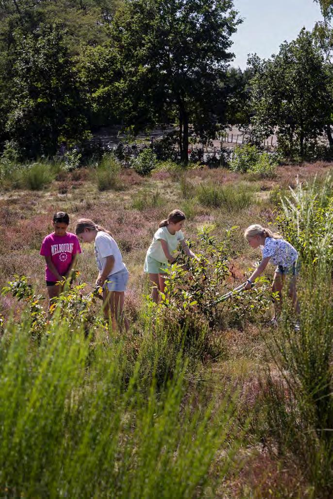 Would you like to encourage ownership among pupils? Then involve them in school green space management. Here, children help keep the heathland on the school grounds sunny for its typical inhabitants, such as the tiger beetle and the grayling (butterfly). Meanwhile, they practise social skills, cultivate citizenship and achieve many learning objectives, for example for physical education. (Catholic Primary School Boxbergheide, Genk)
