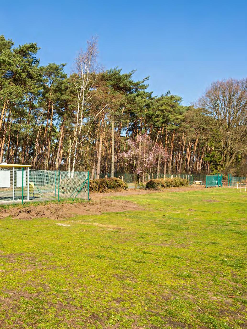 A football pitch is a must at most schools, but can it also be smaller and less central? Of course! Here, the pitch is encapsulated in greenery with an oval dead hedge and around it, a flower meadow with footpaths. This frees up space for other play, nature (experience) and rest.