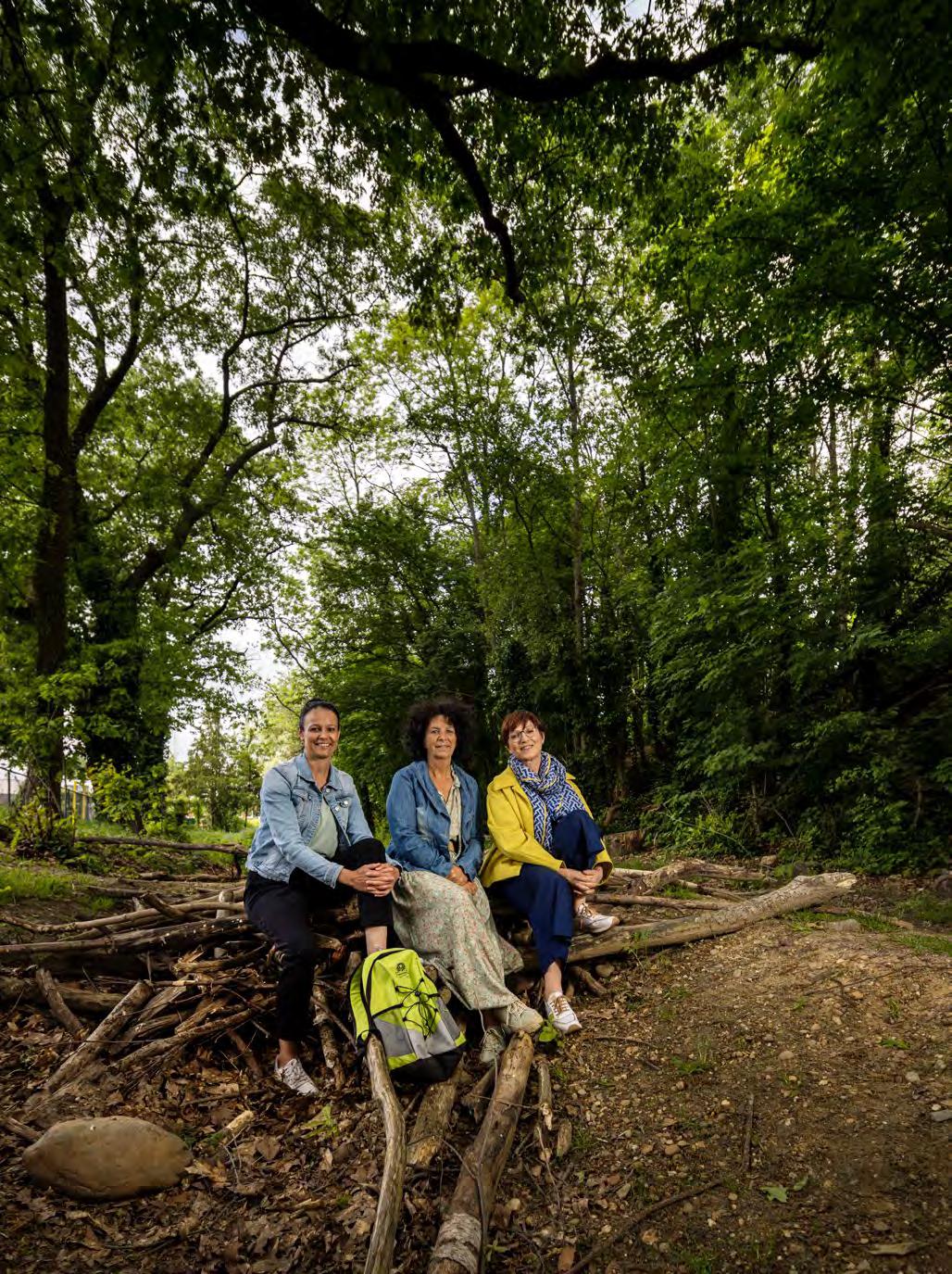 “We dream of a green school environment in which we can explore together with the children, preferably under a radiant sun with only smiling faces. Little by little, we are making these dreams come true. Just as each of us is unique, each green school environment and each outdoor lesson will also be unique. What do you need to do to achieve this? Just go for it. Always following the lead of the child and your outdoor environment. Jump into your dream and make it happen, because nature-based learning is really not difficult!” (Kristel Houben, Gertie Berghmans and Ingrid Coenen (from left to right), Misses Rummage “Rummaging in nature”, photo taken at Municipal Primary School As)