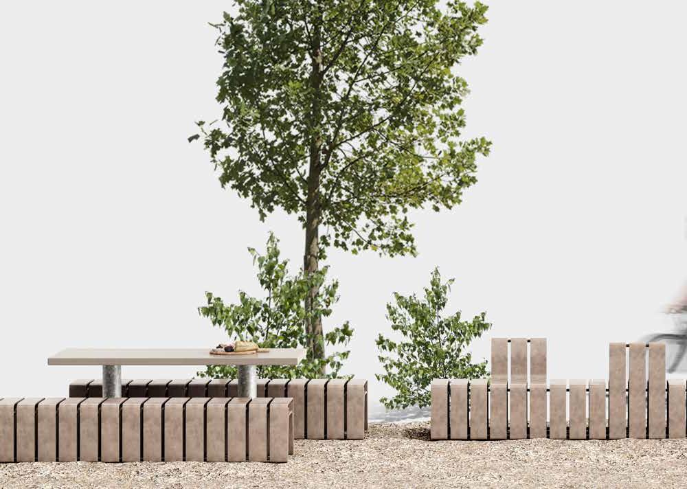 Een uniek Limburgs verhaal: Het ontwerp van dit buitenmeubilair is van Studio Segers, productie en logistiek wordt verzorgd door Ecoo en Wolters Mabeg, de grondstof van dit meubilair is vervaardigd met Limburgs afval. Dit benadrukt niet alleen het lokale vakmanschap, maar ook de duurzaamheid en innovatiekracht van de regio.