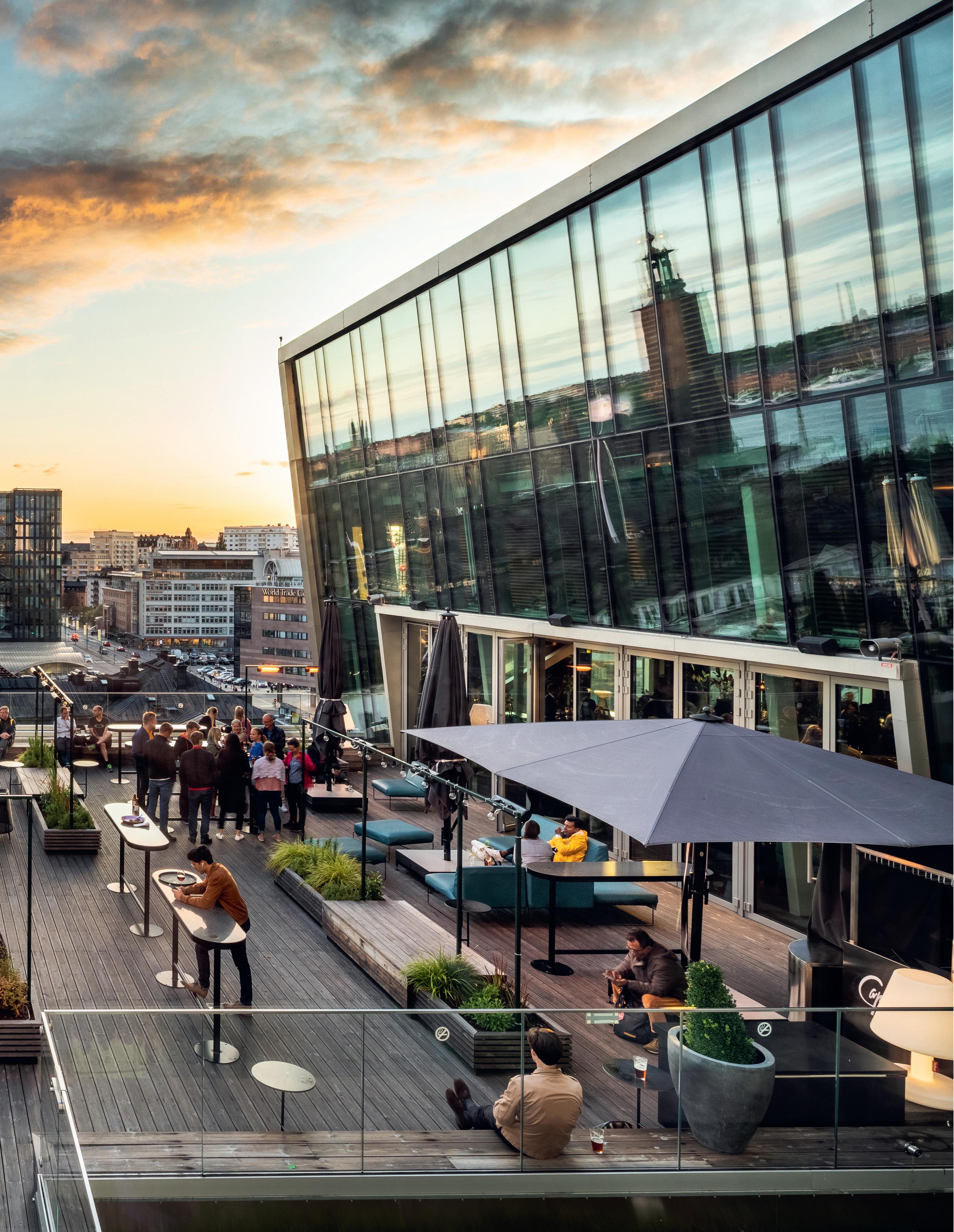 Genom att bottenvåningen i Scandic Haymarket har tagits i anspråk för kafé-, baroch restaurangverksamhet lever miljön även efter det att torghandeln stängt för dagen. I kombination med besöksströmmarna till och från Konserthuset, Filmstaden Sergel och andra näringsställen gör det Hötorget till en av stadens mest frekventerade platser kvällstid.