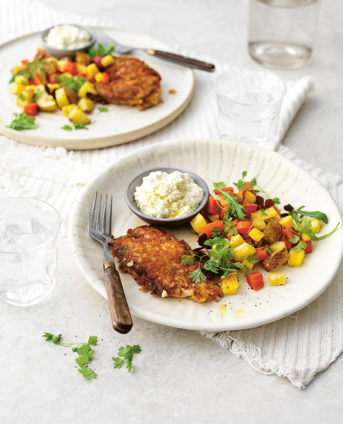 PANKO- OCH PARMESANBAKAD KYCKLINGFILÉ MED FETAOSTKRÄM