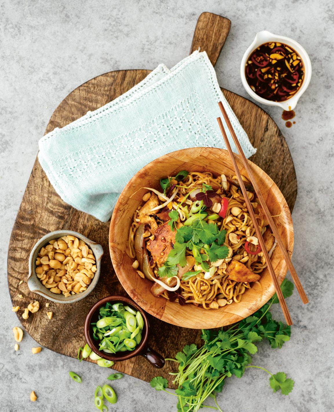 Kyckling är verkligen en tacksam råvara. Genom att välja olika kryddor och tillbehör kan maten ta dig med på en resa till Thailand, amerikanska Södern eller Mellanöstern. Köper du färdiga filéer blir middagen dessutom snabblagad. Här bjuder jag på allt från pad thai och currypasta till stroganoff och grekiskt inspirerad kyckling med fetaost och oliver. Välkommen till bords.