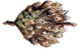 Men jag måste ändå höja några varningens fingrar här. Detta är inget man ger barnen på frukostmackan eller lägger i pannkakstårtan när någon fyller fem. Detta är en vuxen smak, som jag skulle säga passar utmärkt till goda ostar eller på en liten snitt, kanske med något skogigt på. Det är en upplevelse att testa, men man behöver inte ha femtio burkar på lager i källaren och äta med sked. Bäst är att plocka kottarna i början av maj, och bara för att vara väldigt tydlig: Om du inte har en sju meter hög stege och vill klättra upp i en tall, så är det bergstallen du ska plocka kottar från. Då kan man stå på marken och plocka kottarna, noll sport! Det är alltså inte ett litet japanskt bonsaiträd jag har målat på bilden, utan en variant på en bergstall. Kottarna ska vara små och gröna, 1–3 cm stora.
