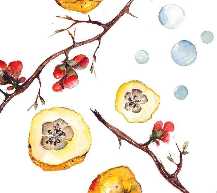 · Äppelmos · Torkade äppelskivor · Saft på rosenkvitten · Marmelad på kvittenfrukt ·