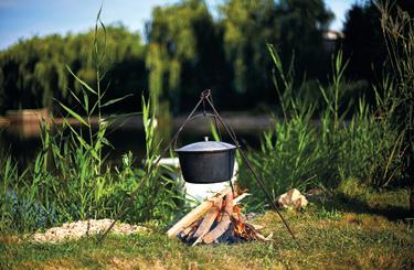 5 Tillsätt gurkan till buljongen, smaka av och häll i