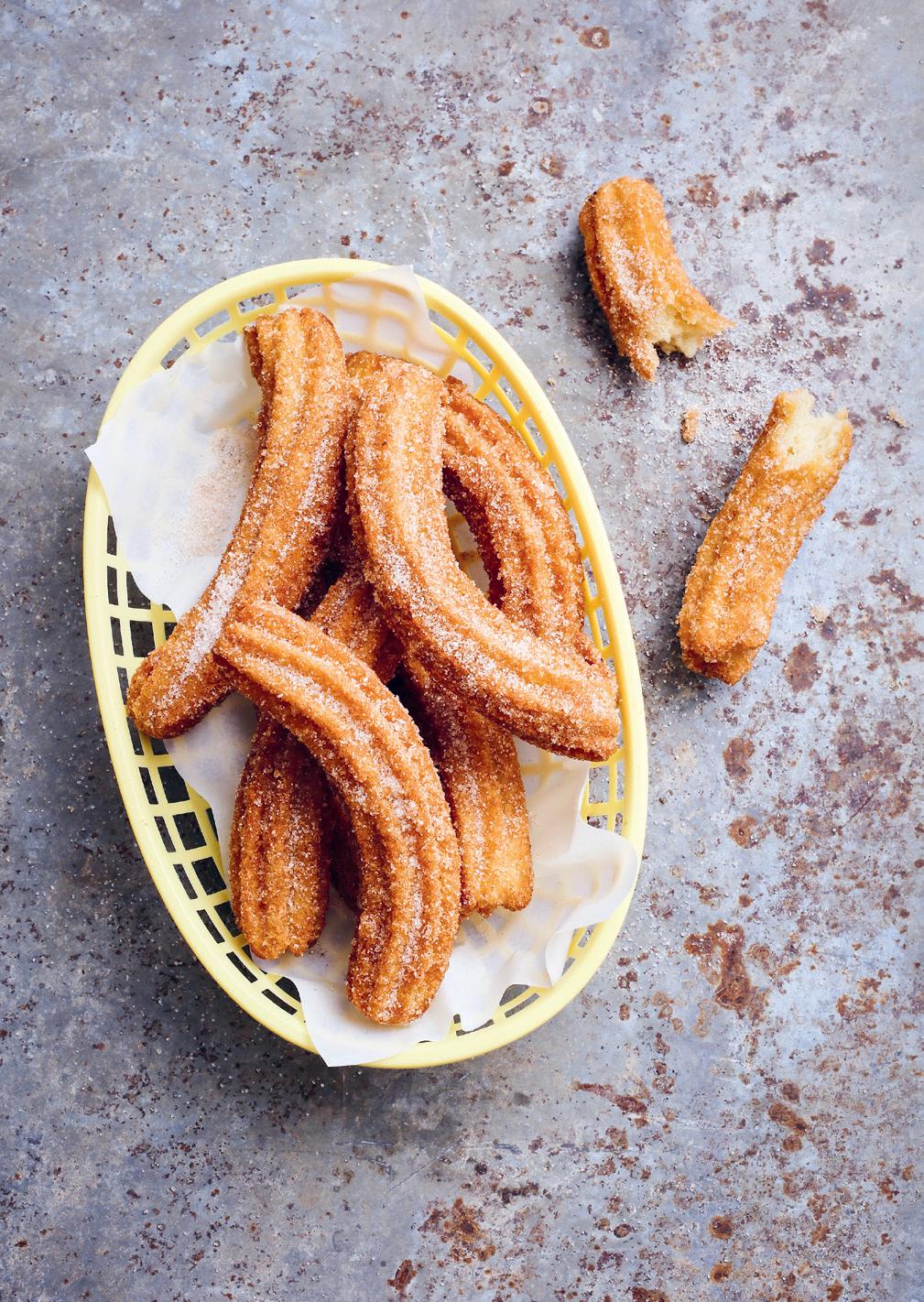 Churros både doftar och smakar som ett helt tivoli. Och hemlagade churros är det ingenting som slår. Churrosdegen går att spara i kylen i ett par dagar innan du friterar den. Den kan också bakas ut till petit chouer, då det handlar om samma typ av deg.