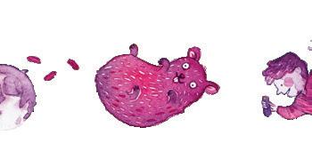 Atomerna är alltså minst och många atomer tillsammans kan bli en cell. Cellerna är mjuka, som små bollar av slajm, och det är de som bygger allt som lever.