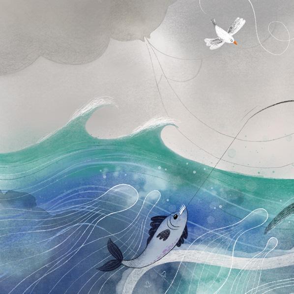 Där går hon och petar bland stenarna och lyssnar på vinden.
