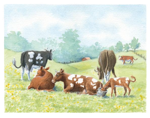 Kalven är hungrig nästan jämt. Då dricker den mjölk från kons spenar. Men den dricker lika gärna ur en hink om man häller upp åt den. Av komjölken kan man göra ost, smör och grädde.