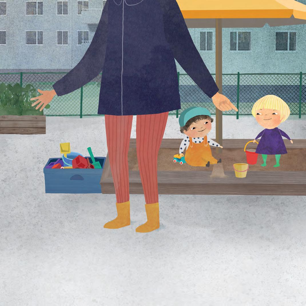 Sickans pappa måste bära. Tur att förskolan är nära.