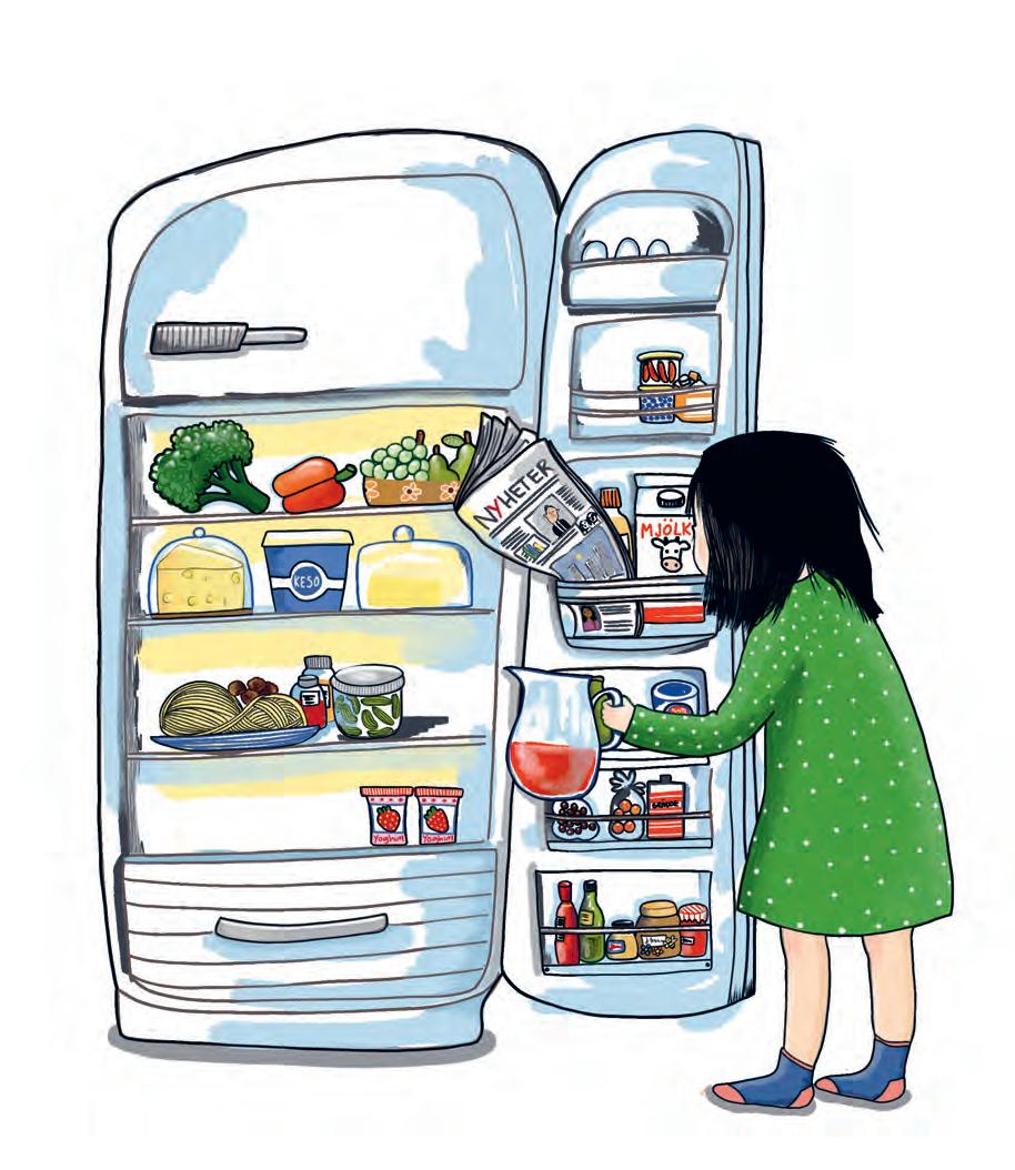 ”Men farmor”, skrattar Disa när hon öppnar kylskåpet för att ställa in saften. ”Varför har du lagt tidningen i kylskåpet?”
