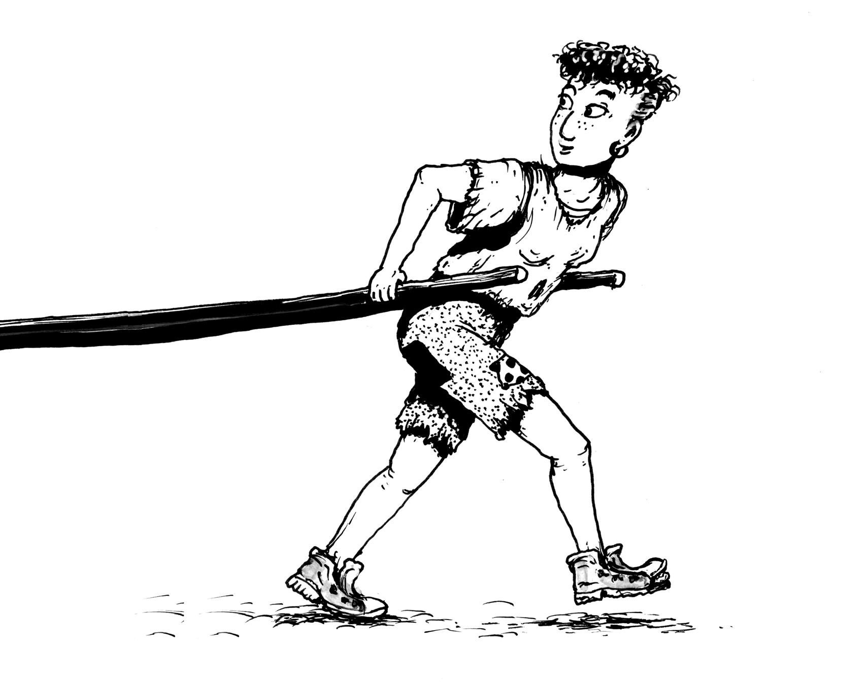 Sonja tar en bunt tidningar och ger Vida en stor eldloka. Vida luktar på den och blir förvånad.