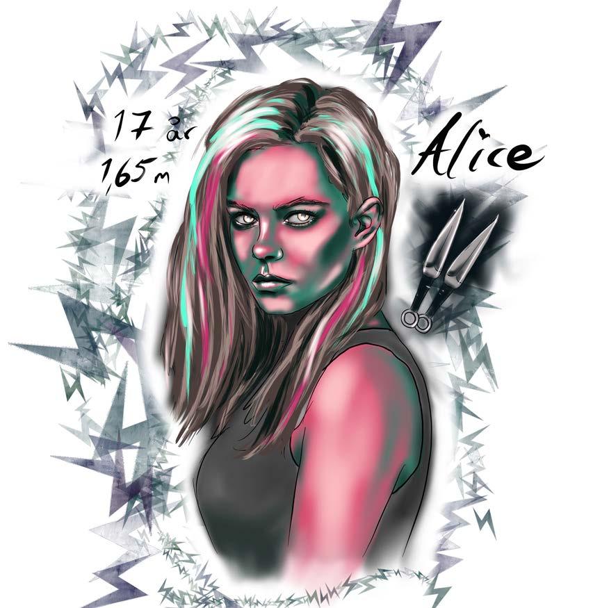 han Àr förÀlskad i henne, men kÀrlek Àr inget han vill fundera pÄ i denna brutala tid. Cristian vÀnder blicken mot Alice. Hon Àr 17 Är nu, med fÀrgat hÄr i olika nyanser och med en stor kÀrlek till knivar och allt annat man kan anvÀnda för att döda nÄgon. Hon Àr en annorlunda varelse, det tycker de alla fyra, men trots hennes smÄ utbrott och konstiga humor kan de inte lÄta bli att gilla henne. De hittade henne nÀr de sökte efter mat pÄ ett övergivet djursjukhus i Ystad. DÄ var hon en ensam liten tjej som inte ville veta av andra levande mÀnniskor men gÀngets önskan blev att fÄ in henne i gruppen. Med tiden mÀrkte de hur hungrig hon var pÄ vÀnskap och nÀrhet, och nu Àr hon deras lilla galna Àngel som gör allt för dem. Men hon Àr verkligen en konstig krabat. De tvÄ andra som stÄr framför honom Àr Fredric och Mattias. TvÄ mÀn som varit sida vid sida sedan kaoset började och som Cristian litar pÄ fullt ut. De Àr bÄda starka men sÄ vÀldigt olika. Mattias Àr blond och Àr en riktigt stilig man pÄ 23 Är. Han Àr smart, smidig och försiktig, men modig i de ögonblick som rÀknas. Det finns inte mycket kött pÄ hans kropp men han Àr vÀltrÀnad. Mattias Àr liten i jÀmförelse med den tvÄ meter lÄnge Fredric, som har en tjurs styrka och humör. Fredric Àr 23 Är, precis som sin vÀn Mattias, men sÄ mycket Àldre Àn honom i sitt sÀtt. Han Àr mer direkt, deltar aldrig i djupa konversationer eller försöker charma, men han visar hur mycket han bryr sig om sina kamrater genom att kÀmpa för dem. Hans fluffiga, kolsvarta hÄr stÄr Ät alla hÄll och hans muskler ser ut som att de ska sprÀnga hans klÀder vilken sekund som helst.