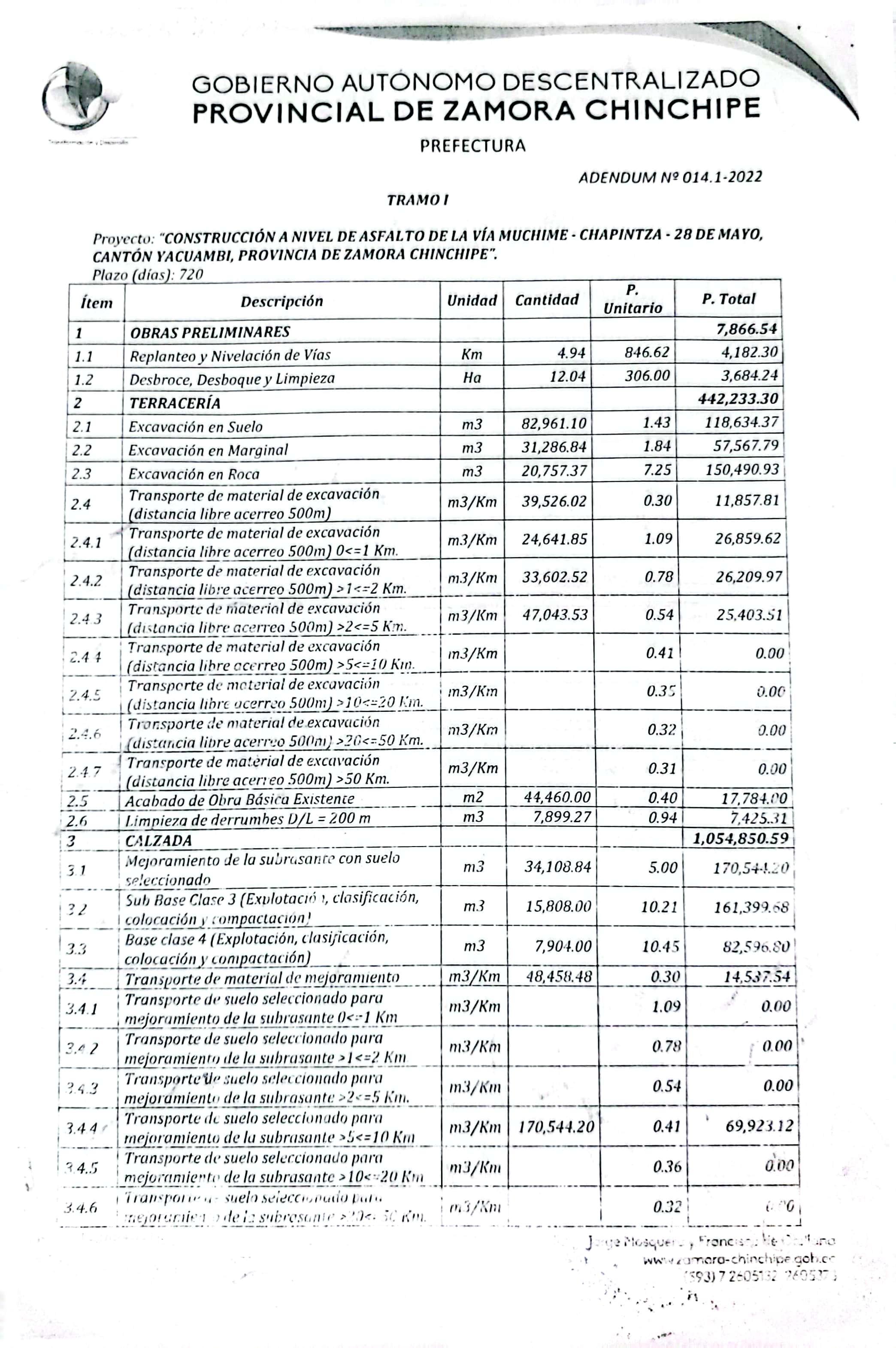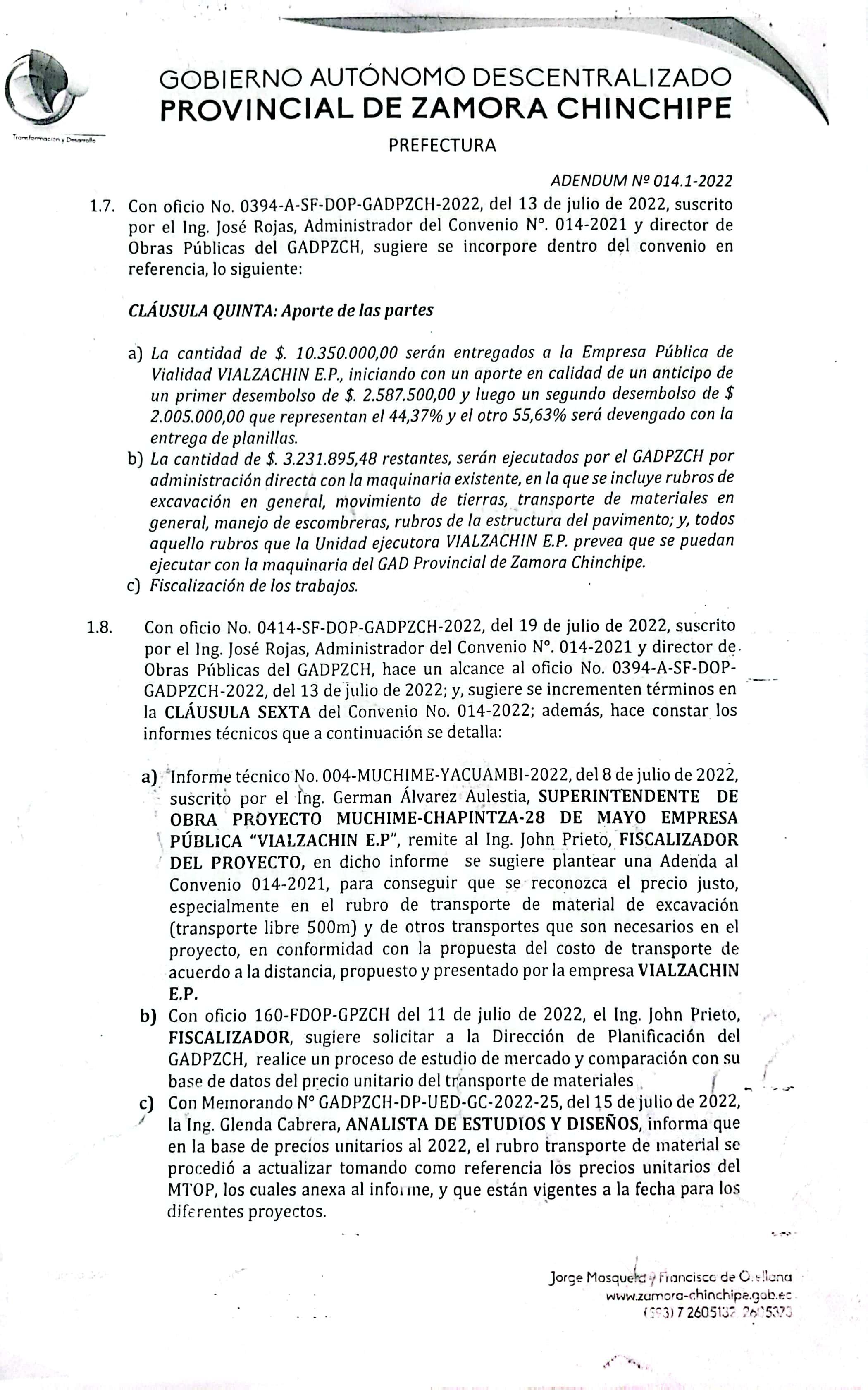 1er adendum al convenio 014.1-2021 asfalto Muchime Chapintza 28 de Mayo VIALZACHIN by UNIDAD DE PROYECTOS GADPZCH - Issuu