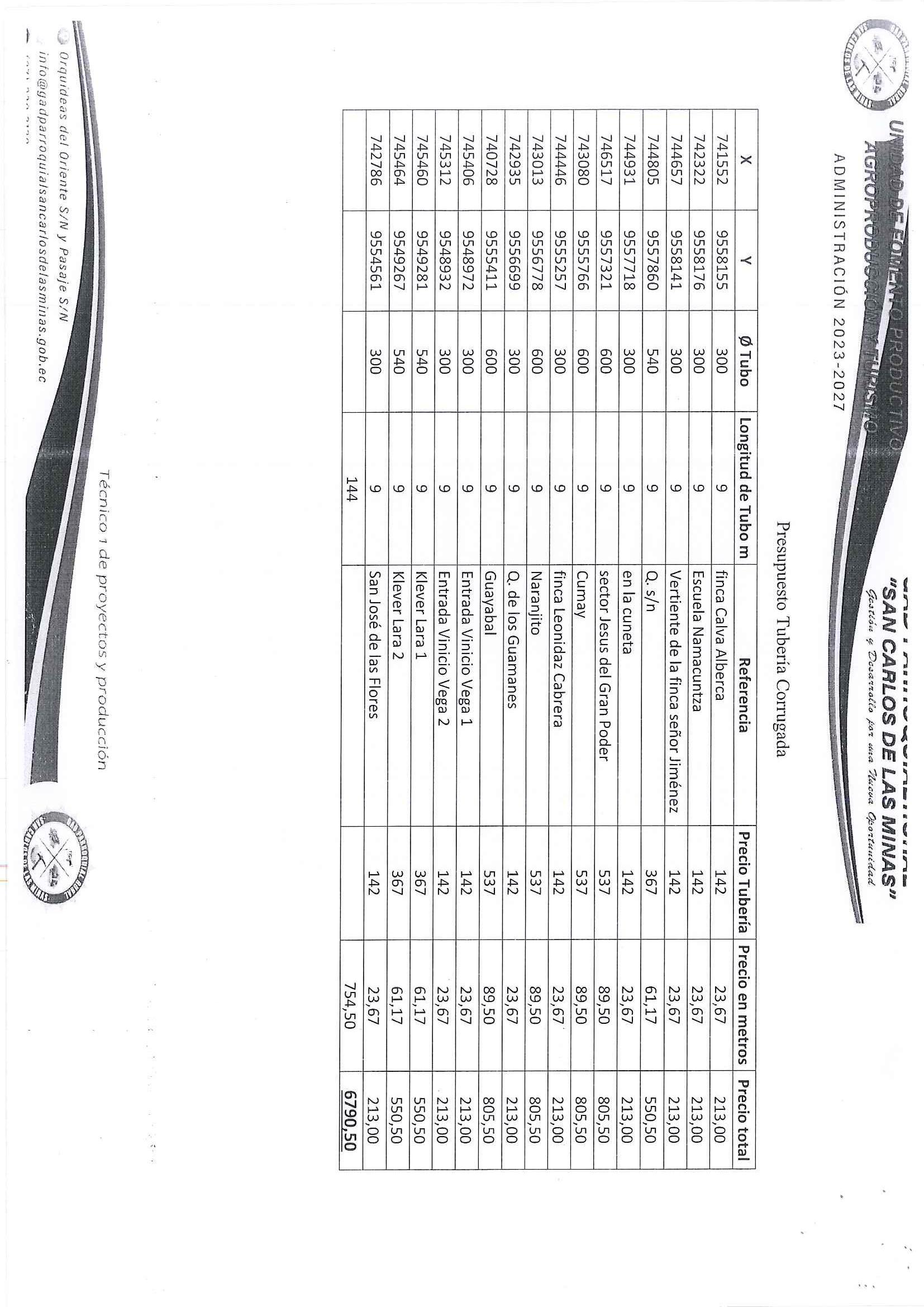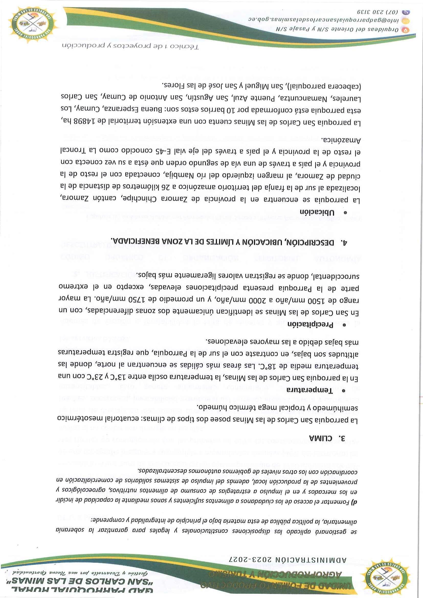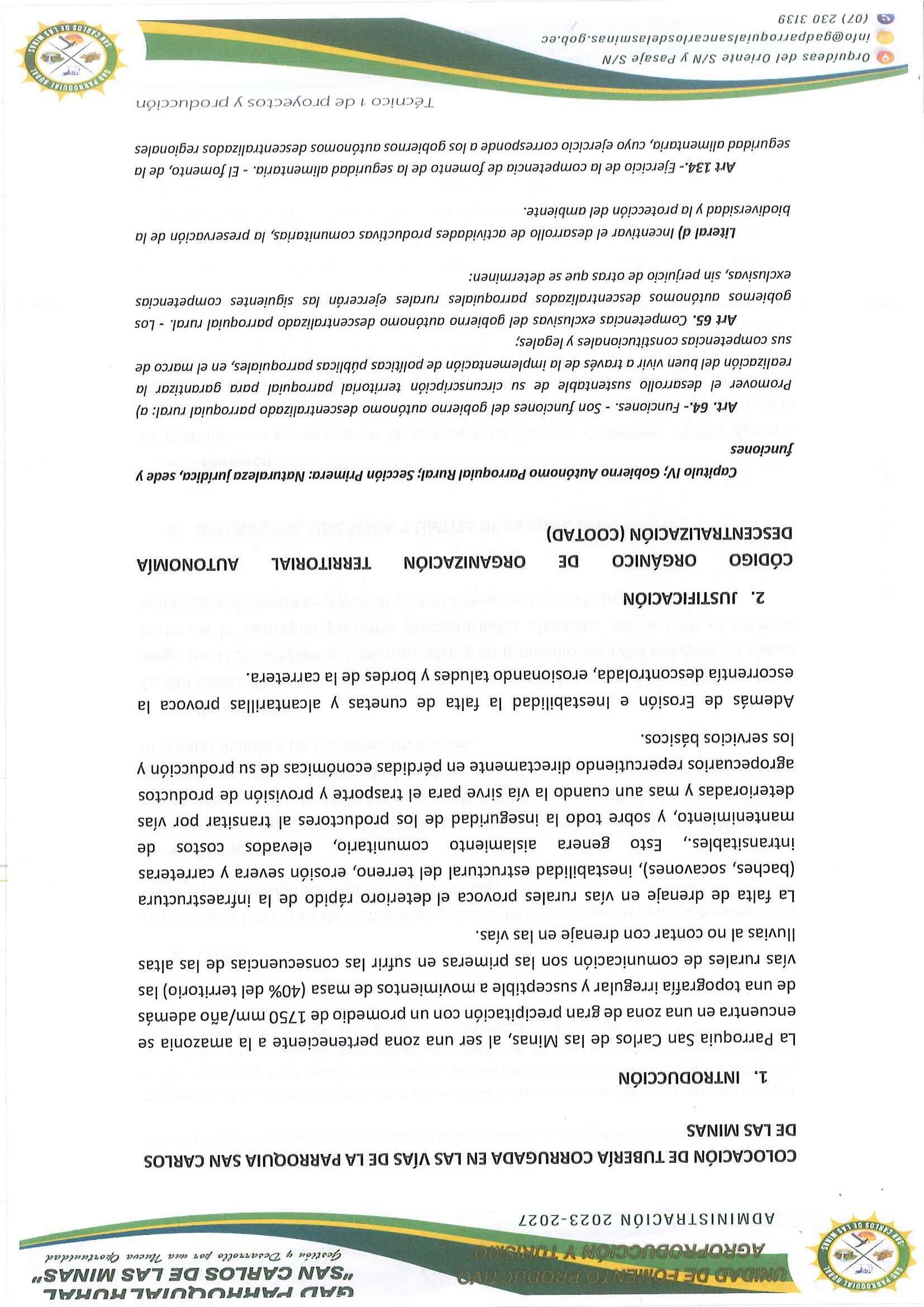 Descentralizado Parroquial Rural de San Carlos de las Minas, así como el presupuesto participativo aprobado para el mismo período, contemplan la ejecución del proyecto denominado: