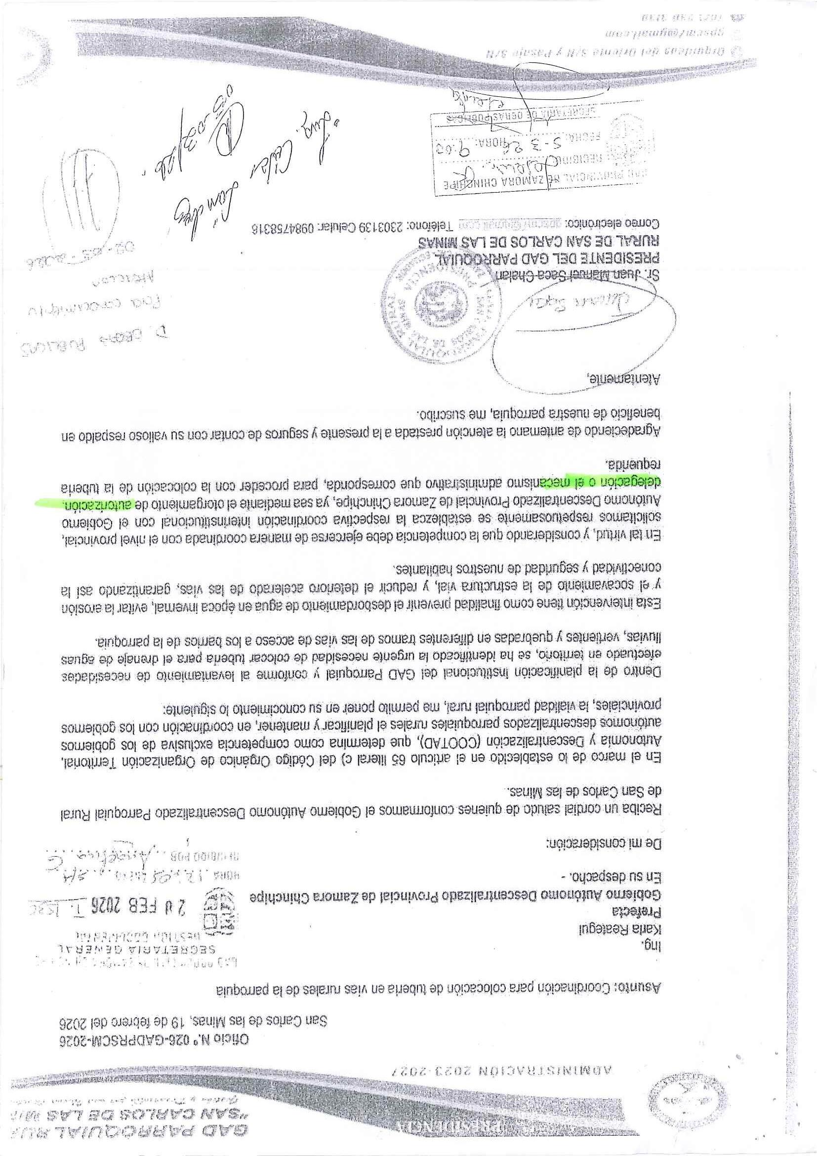 Sr. Juan Manuel Saca Chalan PRESIDENTE DEL GAD PARROQUIAL RURAL DE SAN CARLOS DE LAS MINAS