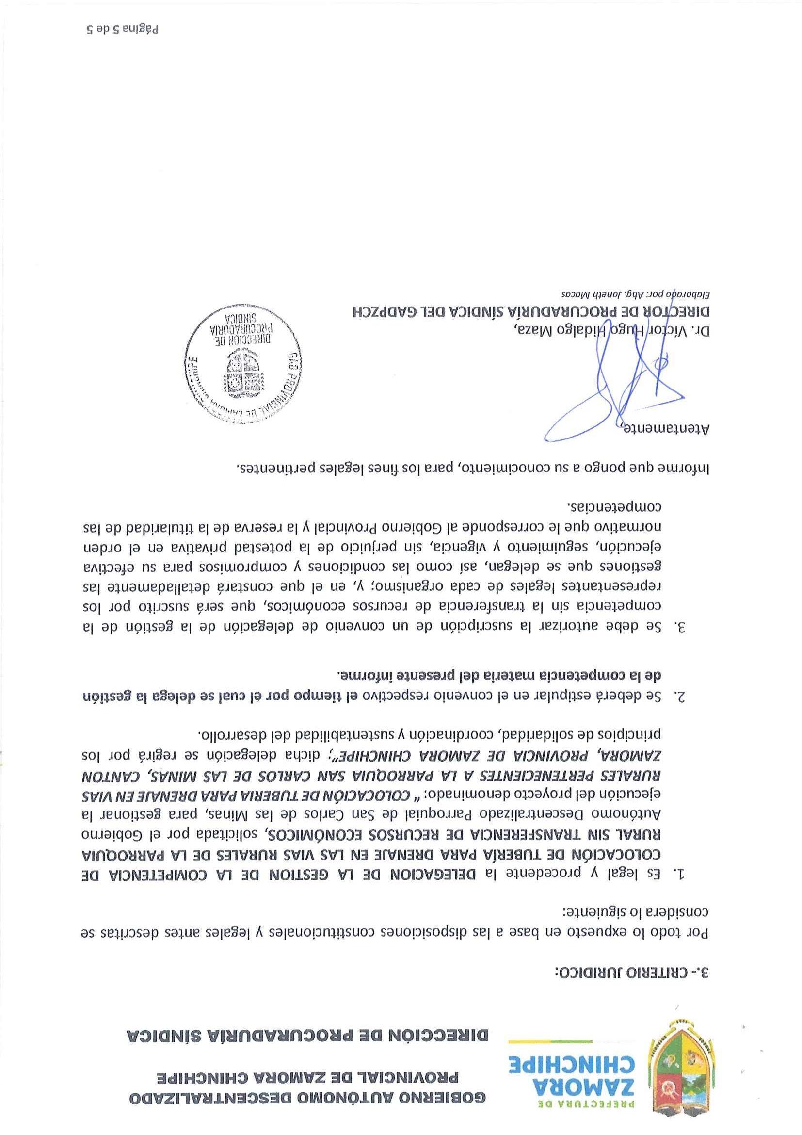 El suscrito, Sr. Juan Manuel Saca Chalán, en calidad de Presidente del Gobierno Autónomo Descentralizado Parroquial Rural de San Carlos de las Minas y Representante Legal de la institución, en ejercicio de sus atribuciones legales,
