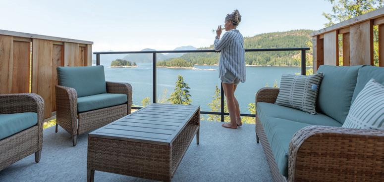 Year-Round Accommodation at Villas on the Inlet, these cliffside suites are the ultimate escape for travellers who love to chart their own adventures. Open year-round, each suite features breathtaking views of the inlet and sunset mountains from your own personal deck, along with a full kitchen and accommodations for up to four guests, making them ideal for extended stays. Guests at the Villas can enjoy the Heritage Lodge’s amenities and book experiences—kayaking, jet skiing, tours, and more—at Egmont. Starting at $299. www.villasontheinlet.com