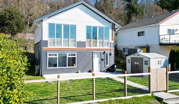 Regional District just minutes south of the municipality of Powell River. With over half an acre of gently sloping landscaped lot meeting 88’ of walk on beachfront. The custom designed home features an open plan with natural light and stunning views throughout. The main level offers formal entry, home office, great room with pellet stove and custom teak kitchen featuring eat-up butcher-block top island with prep sink and tile backsplash, formal dining room and hardwood floors throughout. 8745 PATRICIA ROAD $1,999,900 MLS®17897 WALK-ON WATERFRONT! This stunningly renovated two-storey beachfront home in scenic Powell River is perched at the shores of the Salish Sea with breathtaking ocean views and panoramic sunsets. The split-level two-storey home features a bright and open main level with a fully contained suite downstairs. The home has been extensively updated; just move in and realize your waterfront dream. The custom kitchen features solid wood cabinetry, stainless appliances and quartz counters and is open to the dining room and cozy living room with ceiling height stone fireplace and woodburning insert. 6765 KLAHANIE DRIVE $1,399,900 MLS®17840 This custom-built home on the shores of Cranberry Lake boasts 4,500+ square feet, convenient main-level entry with walk-out suite on a wide quarter-acre lot. This home is full ICF for the utmost in efficiency. The great-room features chef’s kitchen, formal dining and cozy living room with fireplace, all enjoying stunning lake views and natural light. The primary bedroom has a private covered deck with hot tub, large walk-in closet and spa-like ensuite. The basement has a full legal suite, plus a small in-law suite with kitchenette, and a large home office with expansive built-in cabinetry. 7050 CRANBERRY STREET $1,569,900 MLS®17852 20 | REAL ESTATE MAGAZINE MAY 2024