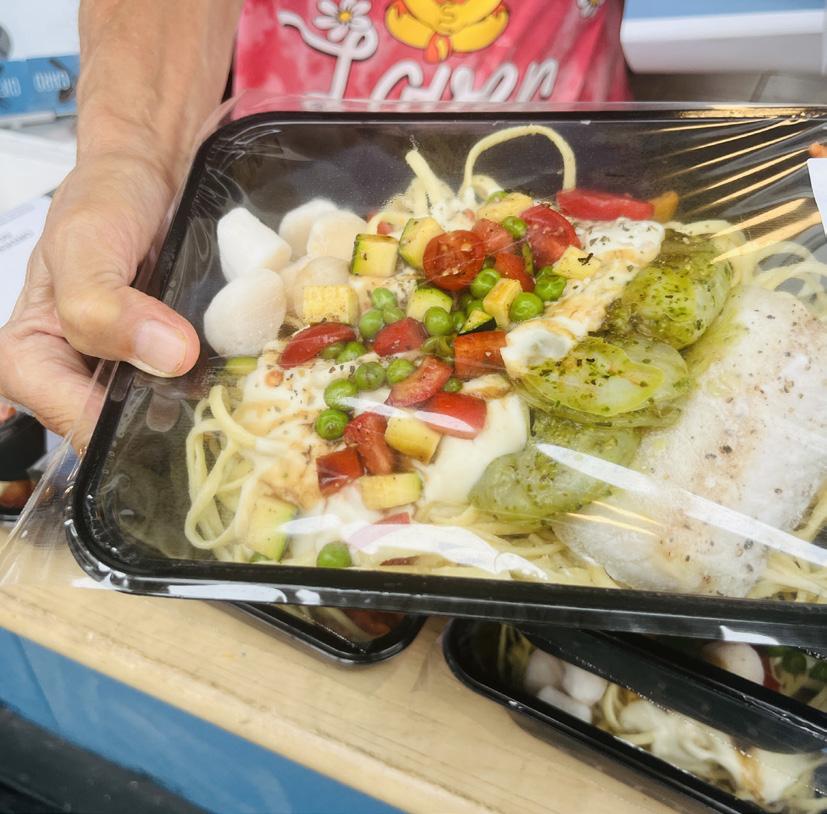 Some of the offerings include many of his childhood favourites, such as homestyle meatloaf, lasagna and Salisbury steaks; all are made from scratch using as much local produce as possible. The menus and recipes are always expanding, and now include customer favourites like seafood chowder, bliss seafood pasta and vegetarian lasagna.