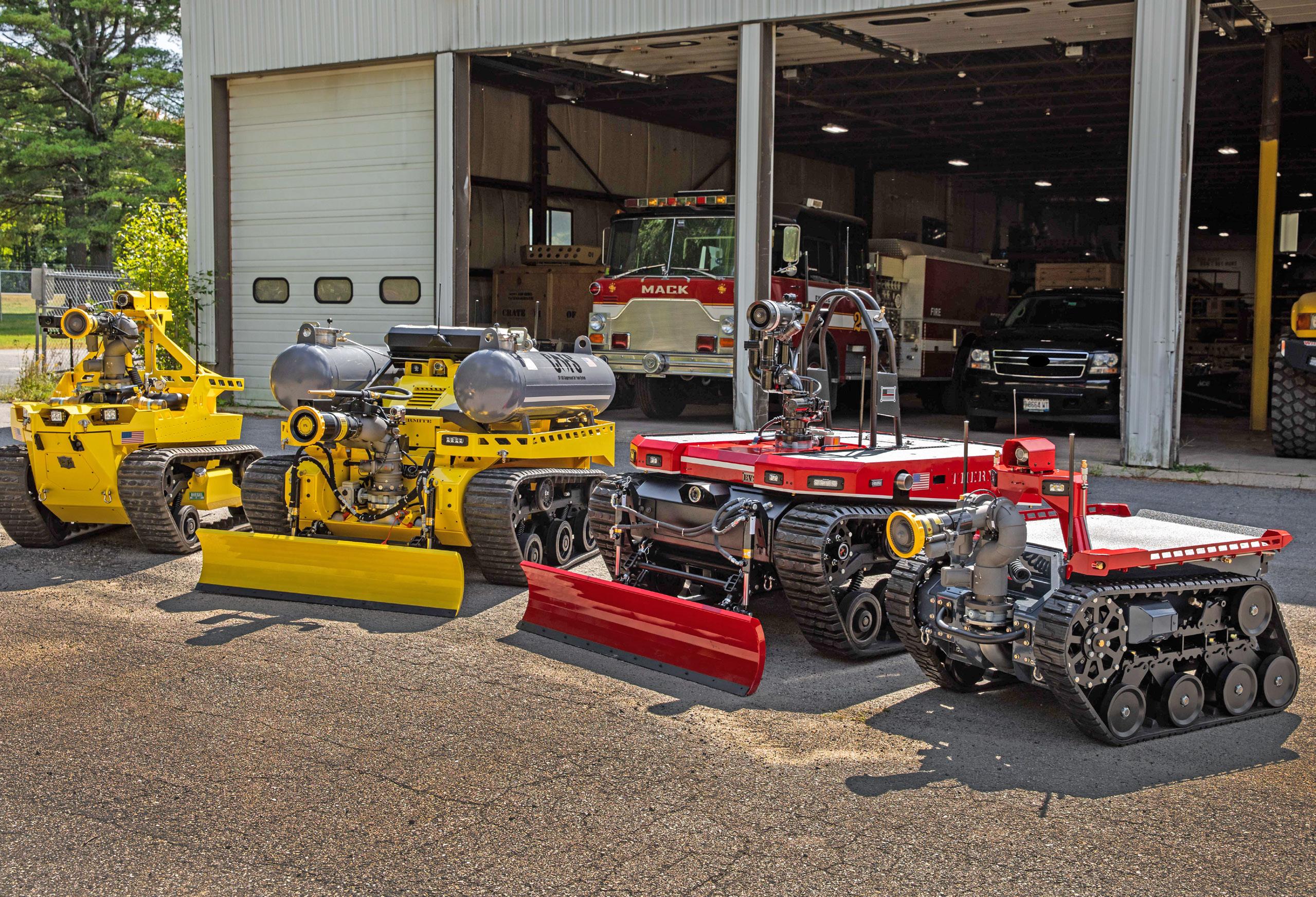 Thermite robotic firefighters are one of the most capable, durable firefighting robots on the market. Designed to mitigate life-threatening situations, these tools provide fire suppression, situational awareness and intelligence gathering to first responders. Operated by remote belly-pack controllers, users are provided a real-time video feed allowing them to traverse hazardous terrain and push obstacles from their path while withstanding extreme elements. Thermite robotic firefighters are critical to have on your side in high risk, dangerous environments.