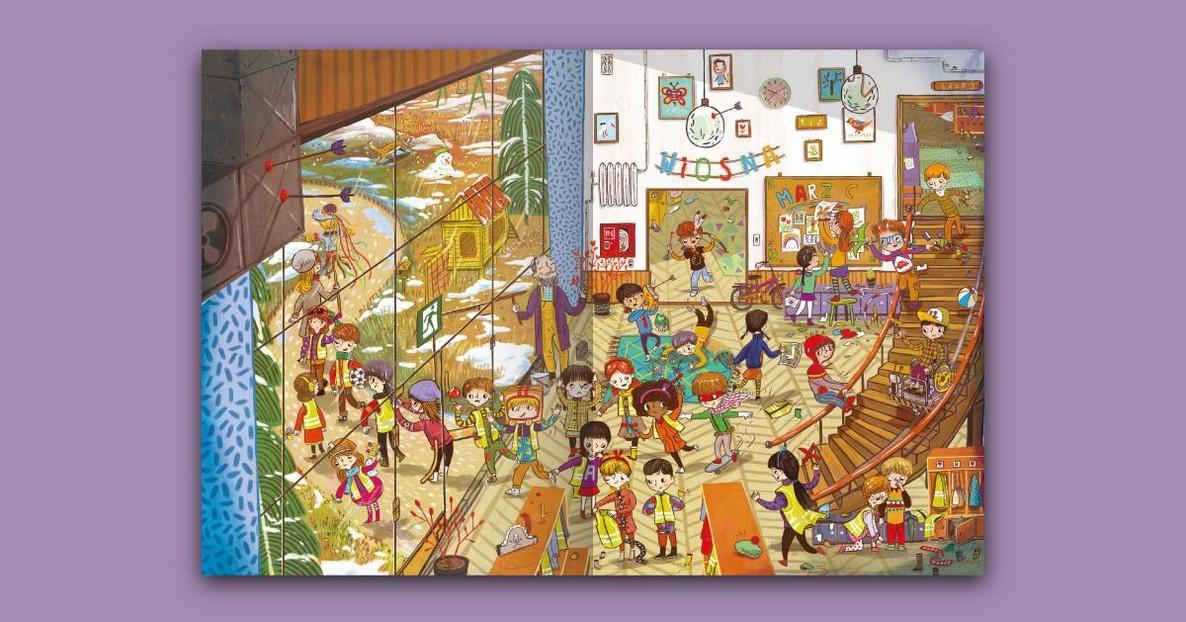 Seria „Rok W” to już klasyka w dziecięcych biblioteczkach. Do zacnego grona dołączył „Rok w przedszkolu”. Na początku poznajemy dzieciaki ze Słonecznego Przedszkola. Każde inne: jest tu fanka księżniczek cała w tiulach i łobuziara z procą, jest chłopiec na wózku i mały Aleks, który w przedszkolu czuje się jeszcze niepewnie. Na kolejnych 12 stronach będziemy śledzić przedszkolaki miesiąc po miesiącu i podpatrywać przedszkolne zwyczaje. Poręczna, kartonowa, pełna żywych, tętniących kolorami ilustracji – to nasz typ na ulubioną książkę przedszkolnego debiutanta. Ciężko nie polubić Słonecznego Przedszkola.