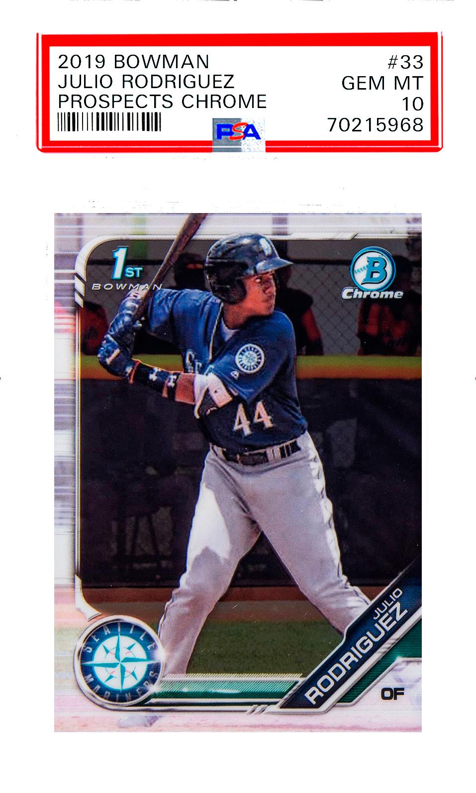 Collectors love the simple, Topps-like design and the bold purple border, as well as the relative ease of acquiring the card. There are 73 PSA 10s in total, which are valued at around $2,000 apiece according to Card Ladder.